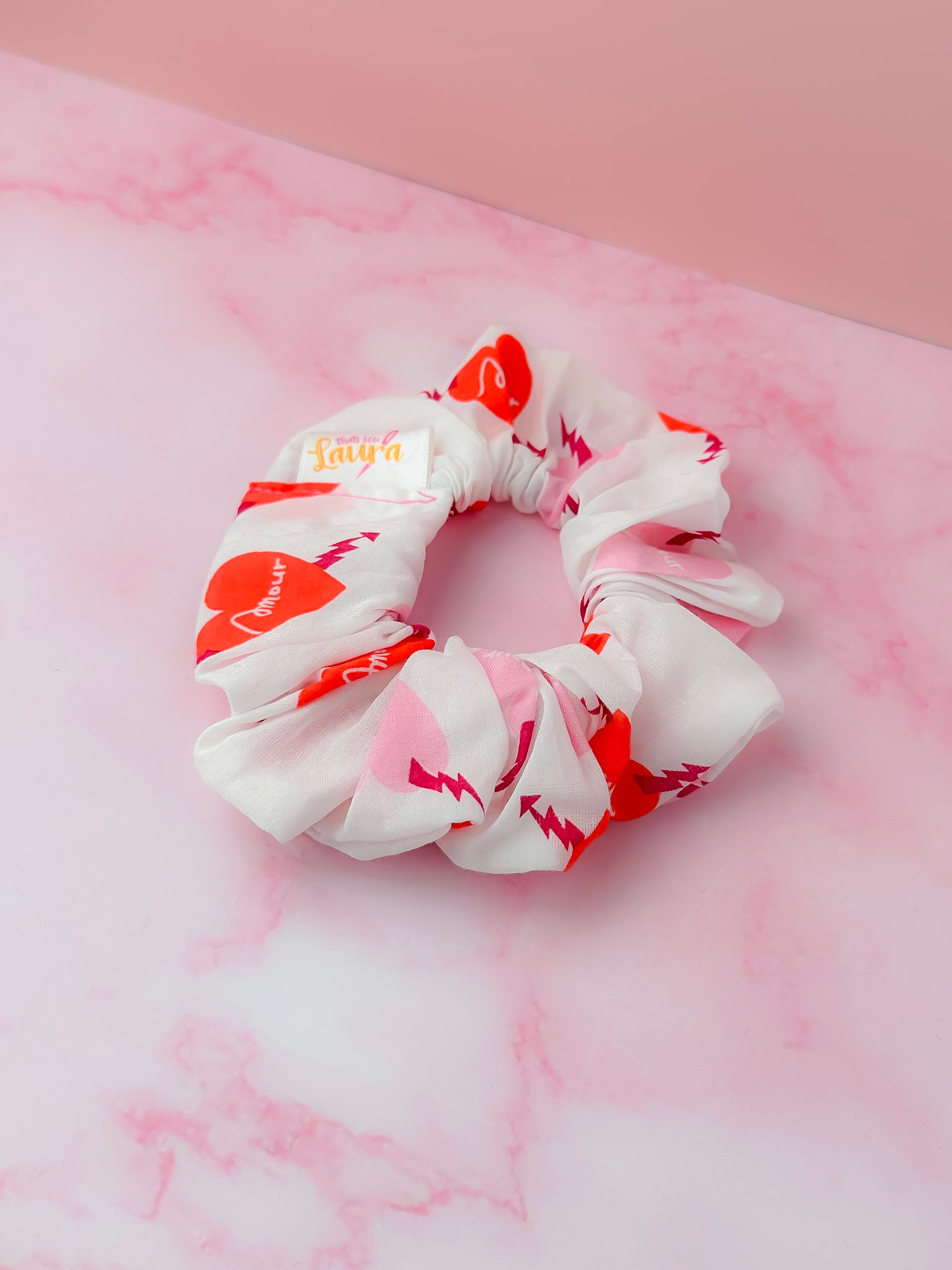Amore - White & Pink heart print classic scrunchie