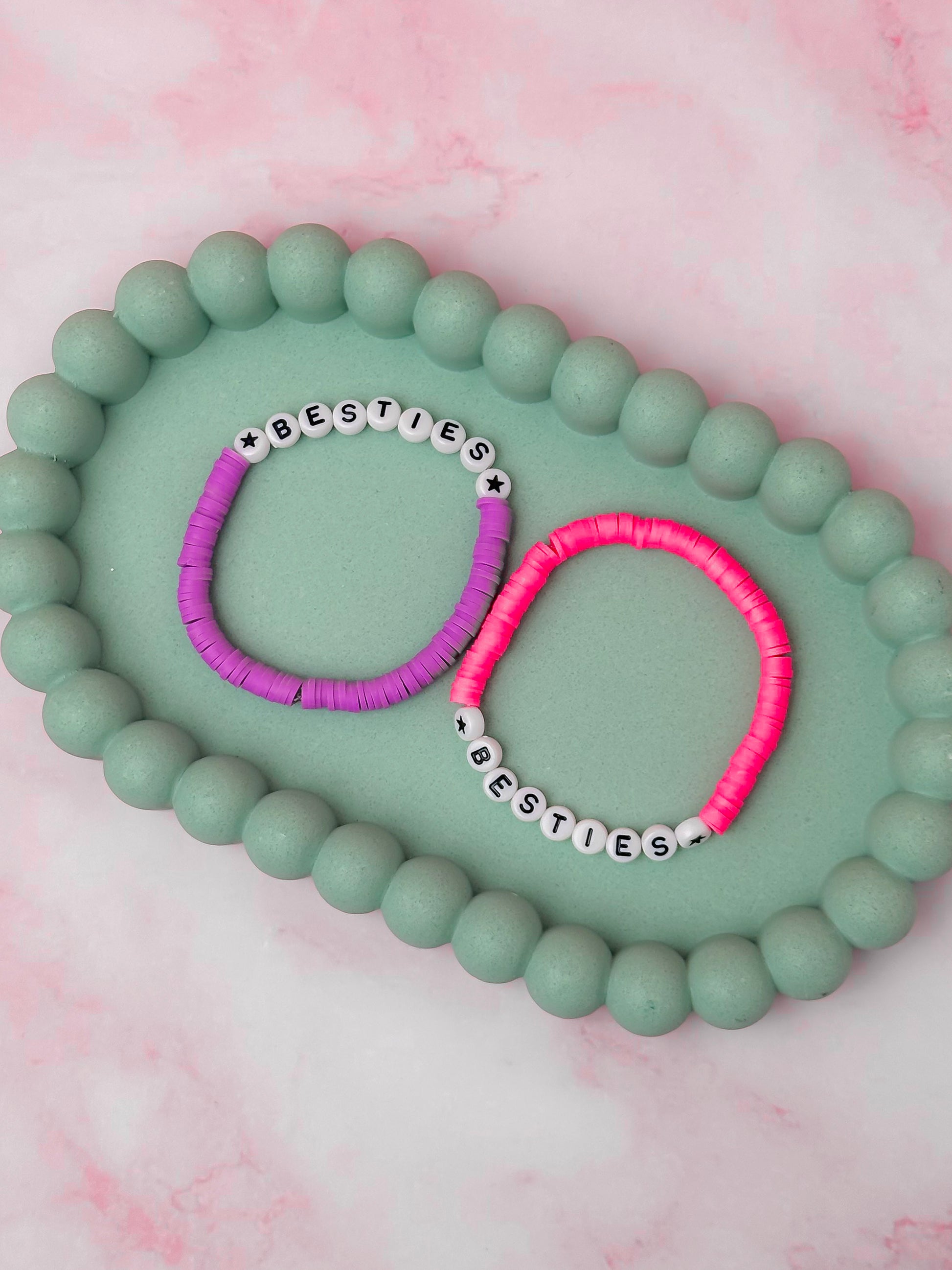 Besties - Purple & Pink polymer clay Handmade Beaded Bracelet