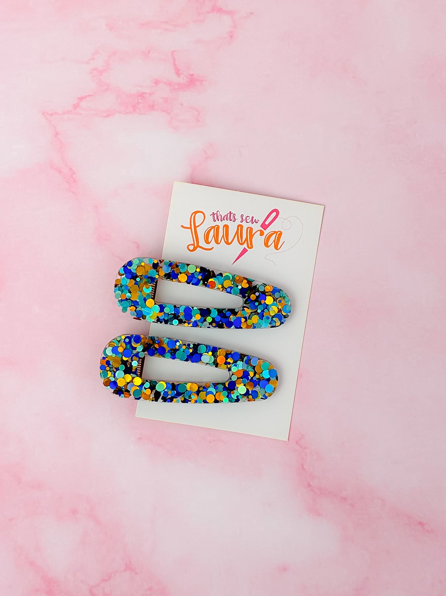 Sparkle in your hair, sass in your step. These blue and gold glitter resin hair clips are the easiest way to add instant fun to your look — whether you’re taming flyaways or just making an ordinary day feel a bit extra.