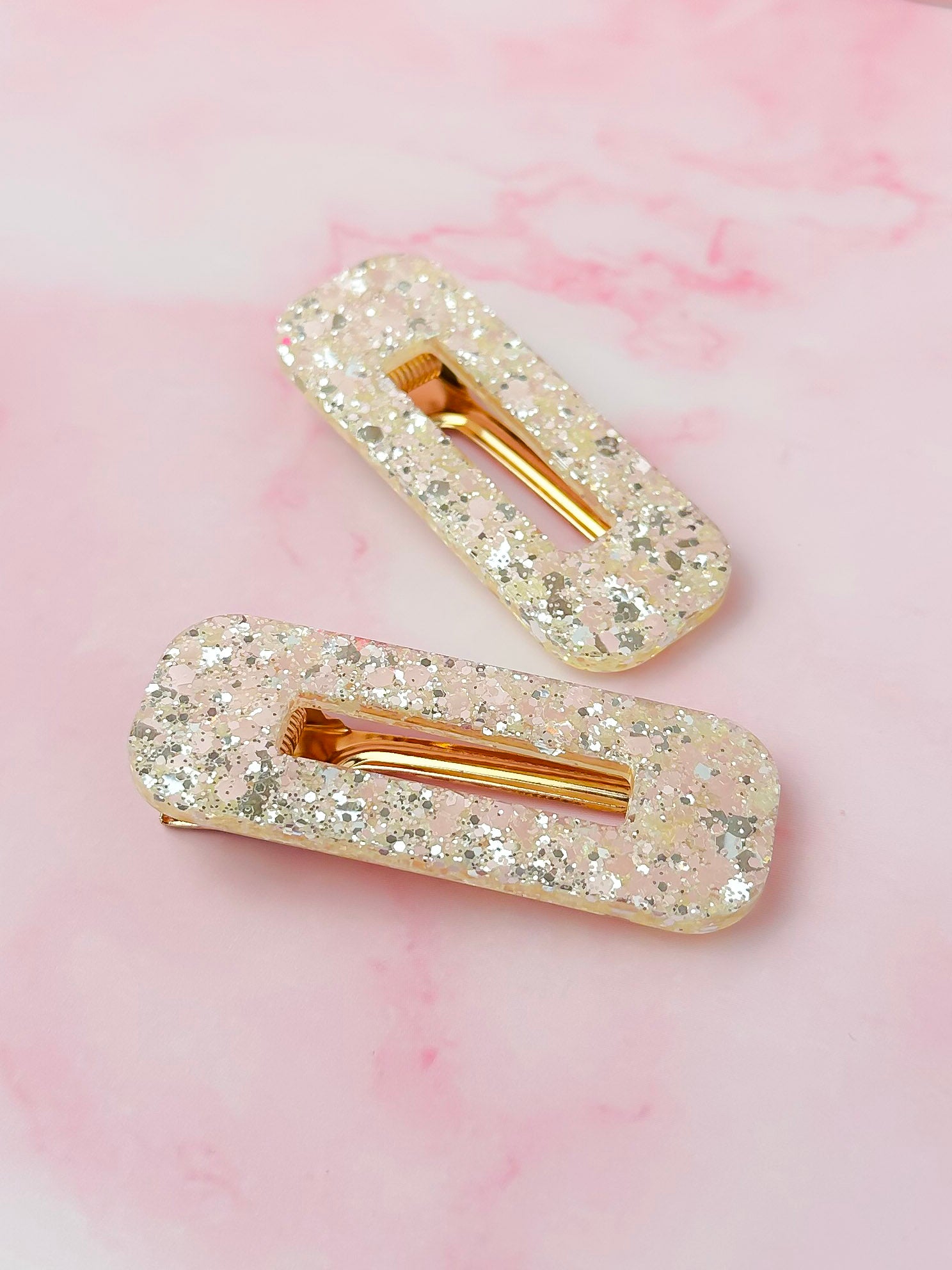 Sparkle in your hair, sass in your step. These high shine yellow glitter resin hair clips are the easiest way to add instant fun to your look — whether you’re taming flyaways or just making an ordinary day feel a bit extra.