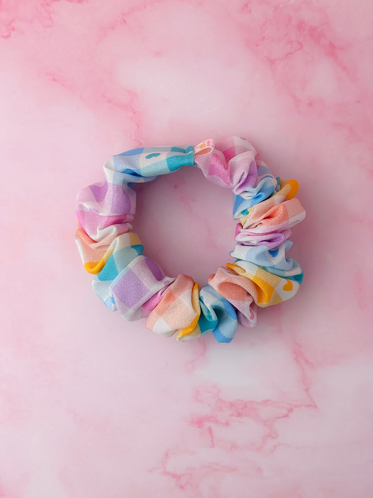 Elsie - Pastel coloured checkered heart gingham wide scrunchie