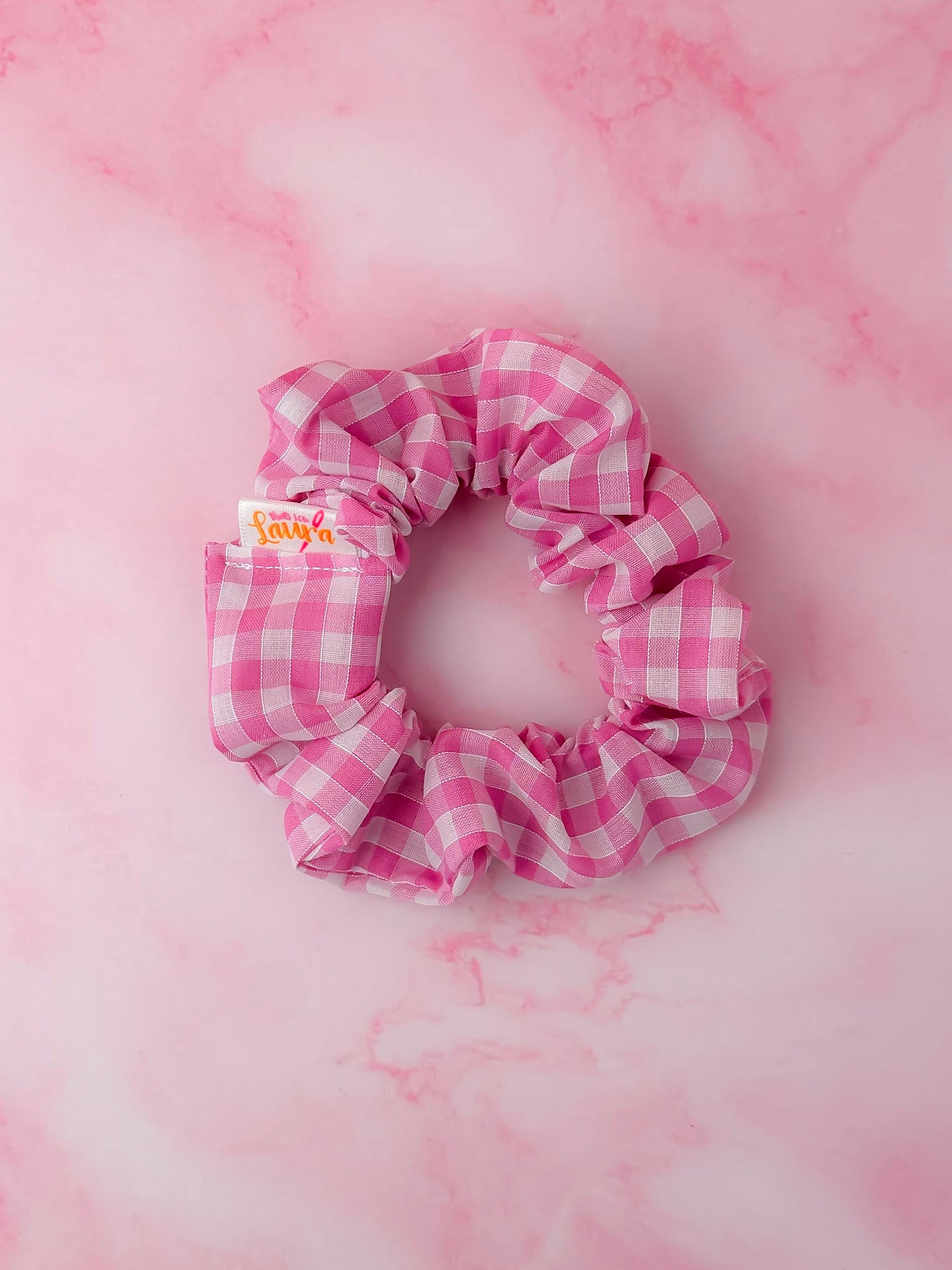Your hair deserves better. Meet the scrunchie that’s kind to your hair and makes a statement — the Pink Gingham print scrunchie.