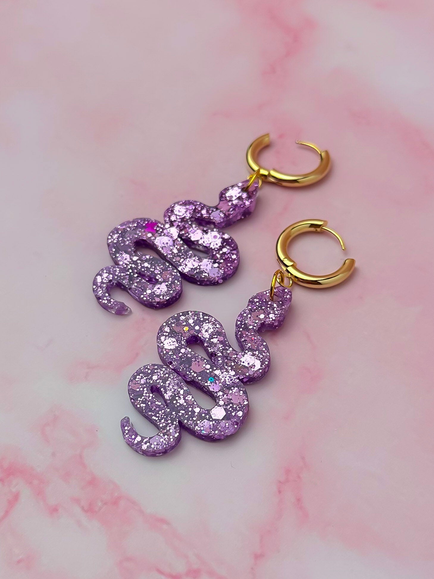 Lightweight sparkle, bold vibes. The Lavender snakes resin earrings are proof you can make a statement without weighing your lobes down.
