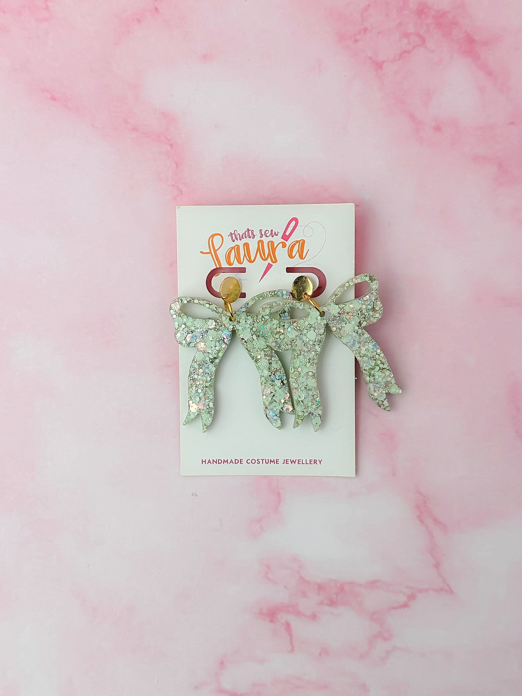 Meadow Bows - green and gold glitter Resin Earrings
