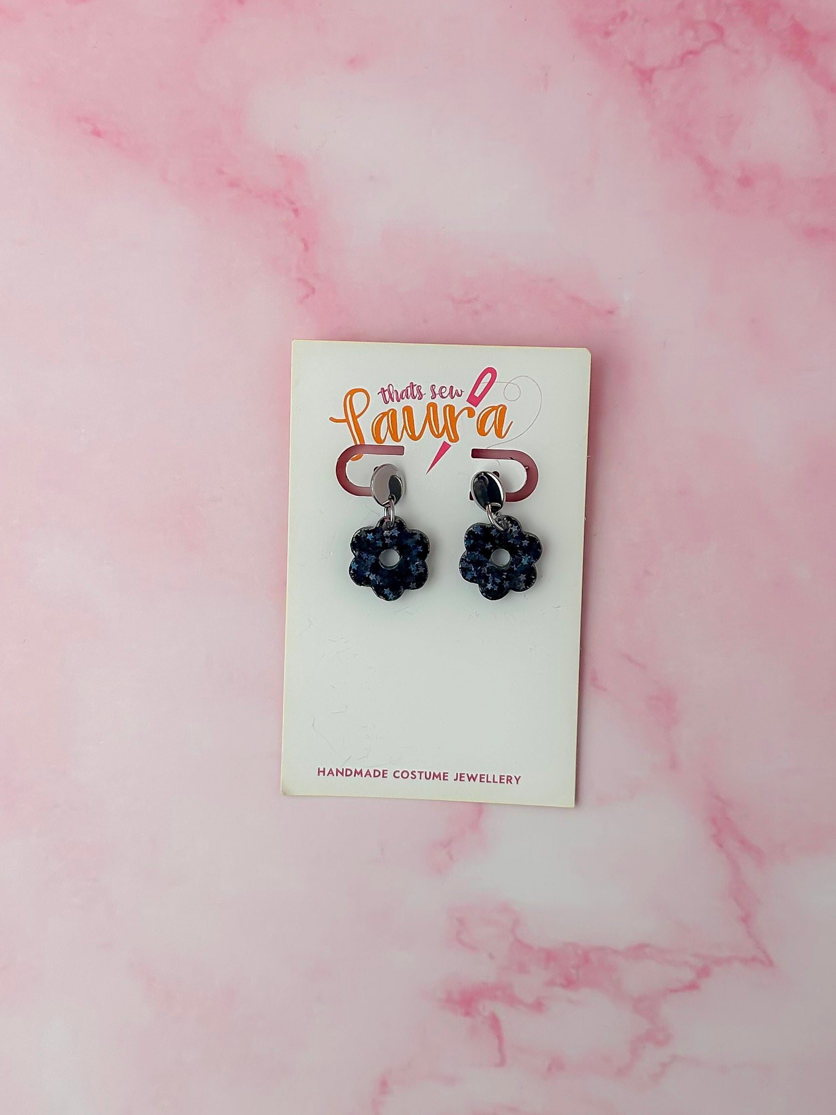 Lightweight sparkle, bold vibes. The Midnight flower resin earrings are proof you can make a statement without weighing your lobes down.