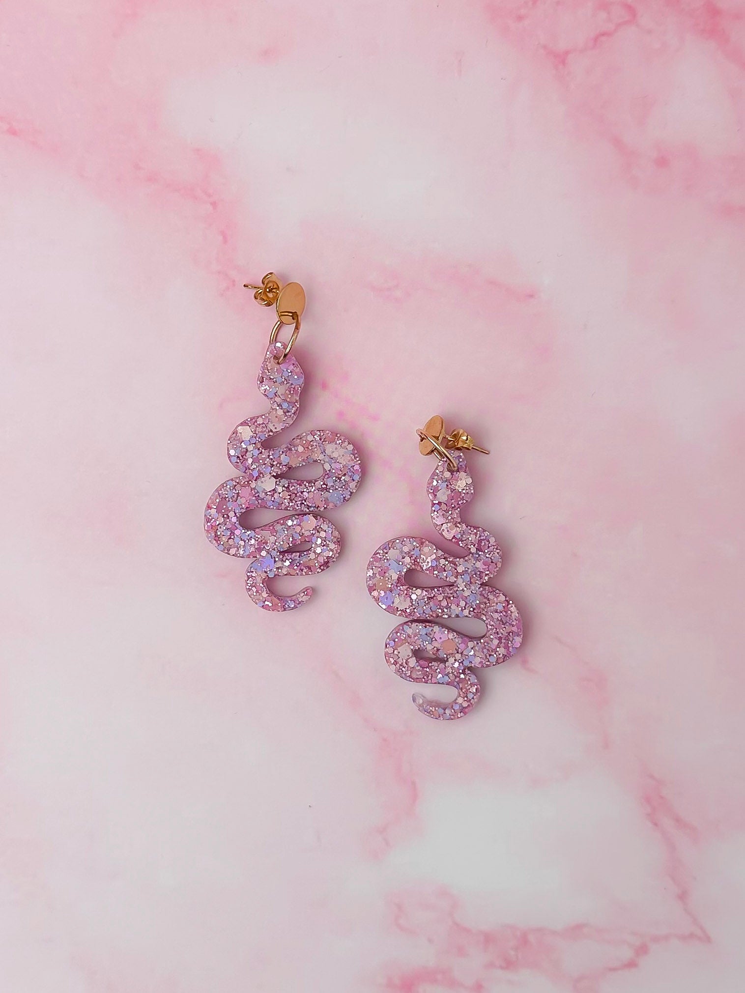 Lightweight sparkle, bold vibes. The Day Drive snakes resin earrings are proof you can make a statement without weighing your lobes down.