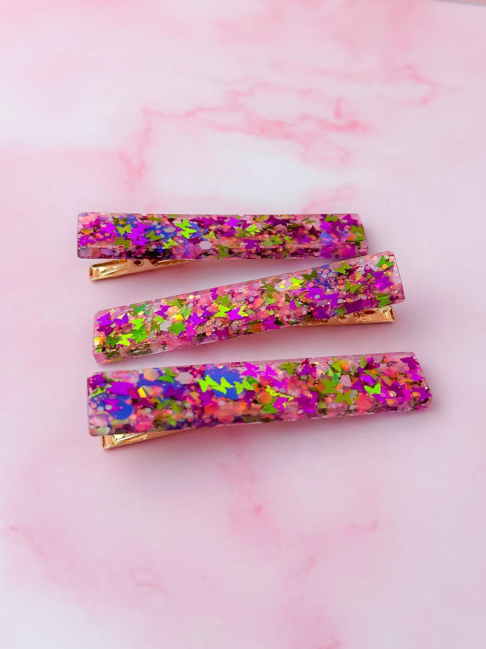 Sparkle in your hair, sass in your step. These pink butterfly glitter resin hair clips are the easiest way to add instant fun to your look — whether you’re taming flyaways or just making an ordinary day feel a bit extra.