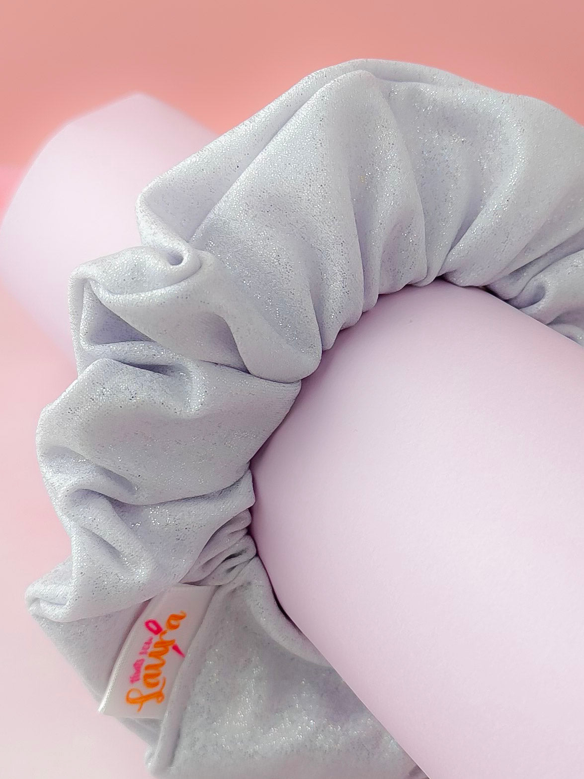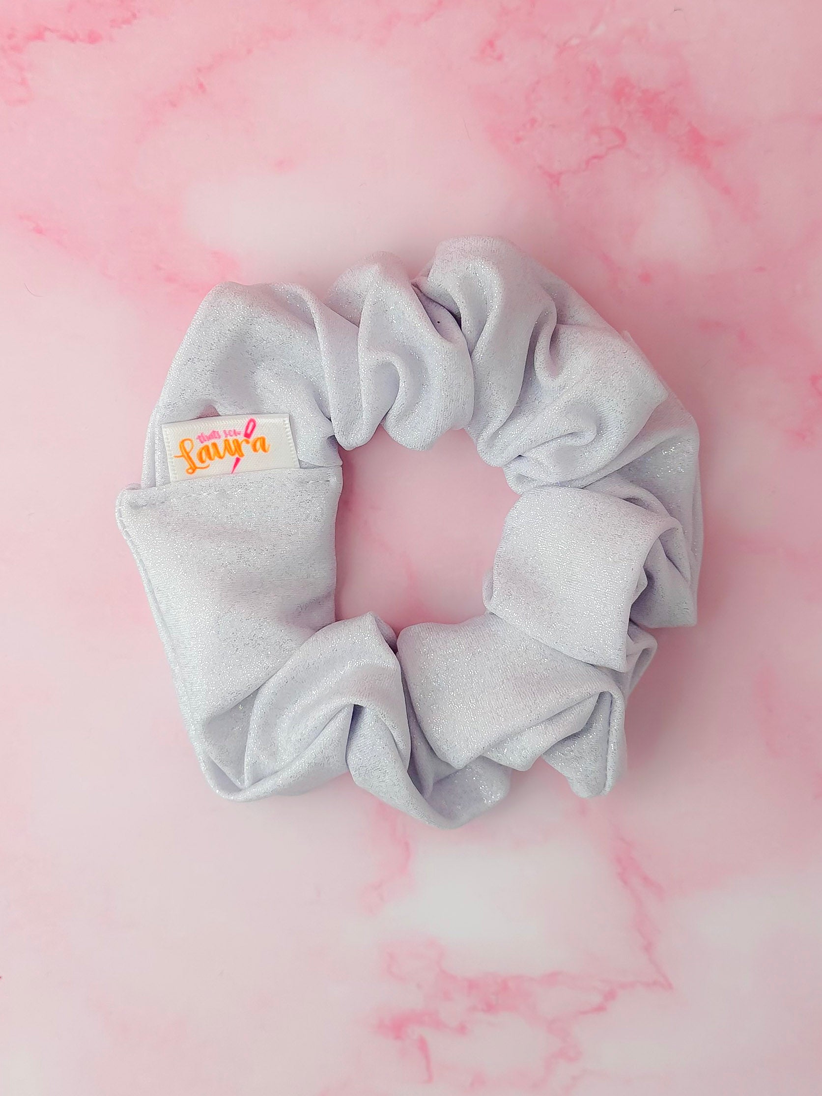 Your hair deserves better. Meet the scrunchie that’s kind to your hair and makes a statement — the Silver glitter dance scrunchie.