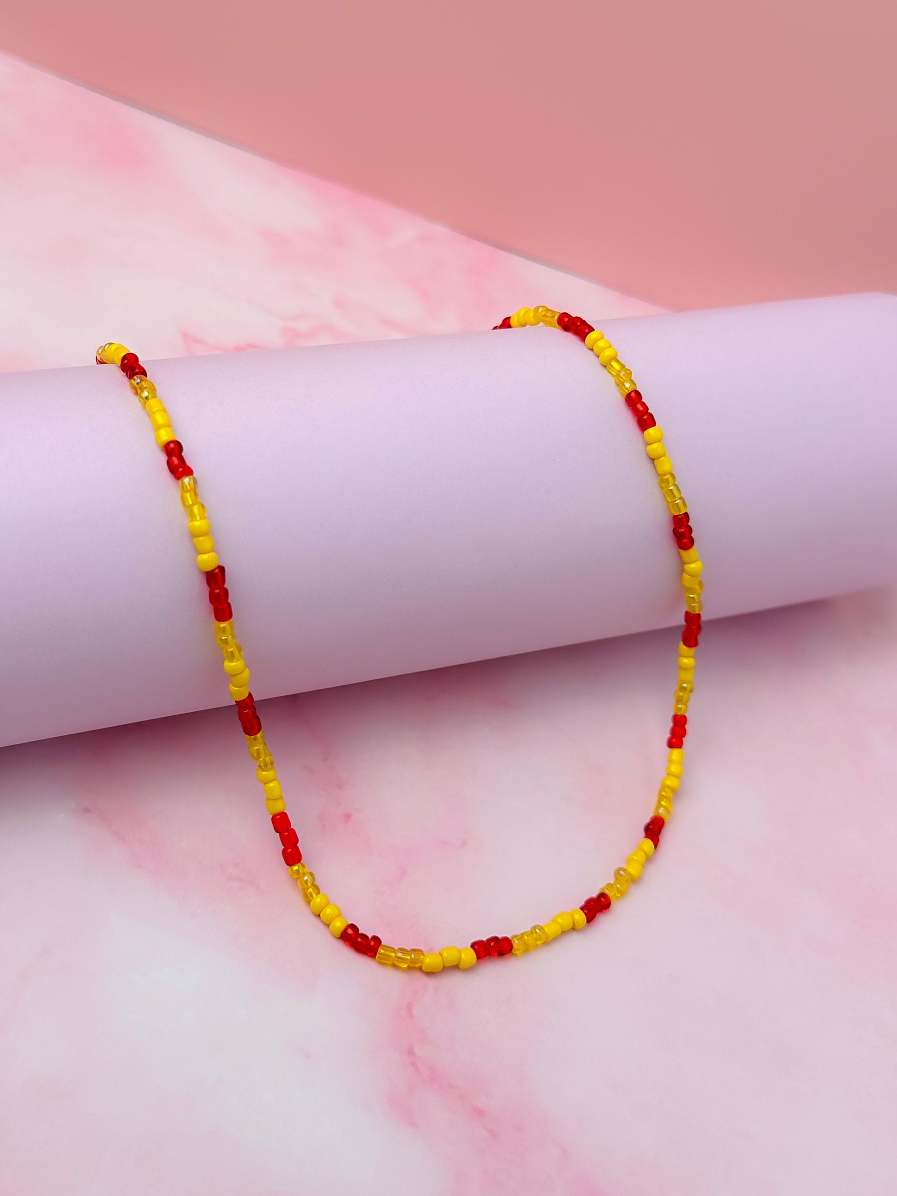 - Materials: Seed beads on jewellery wire with a plated silver clasp & chain