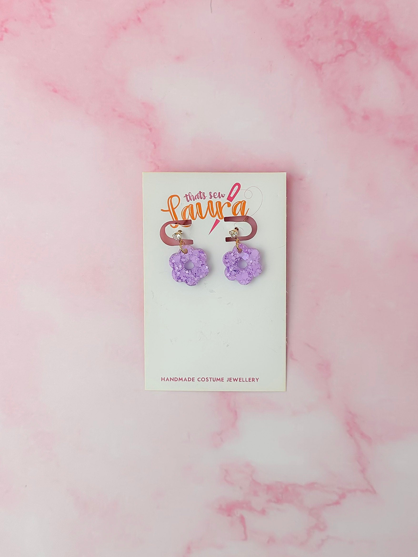 Lightweight sparkle, bold vibes. The Lilac Flowers resin earrings are proof you can make a statement without weighing your lobes down.