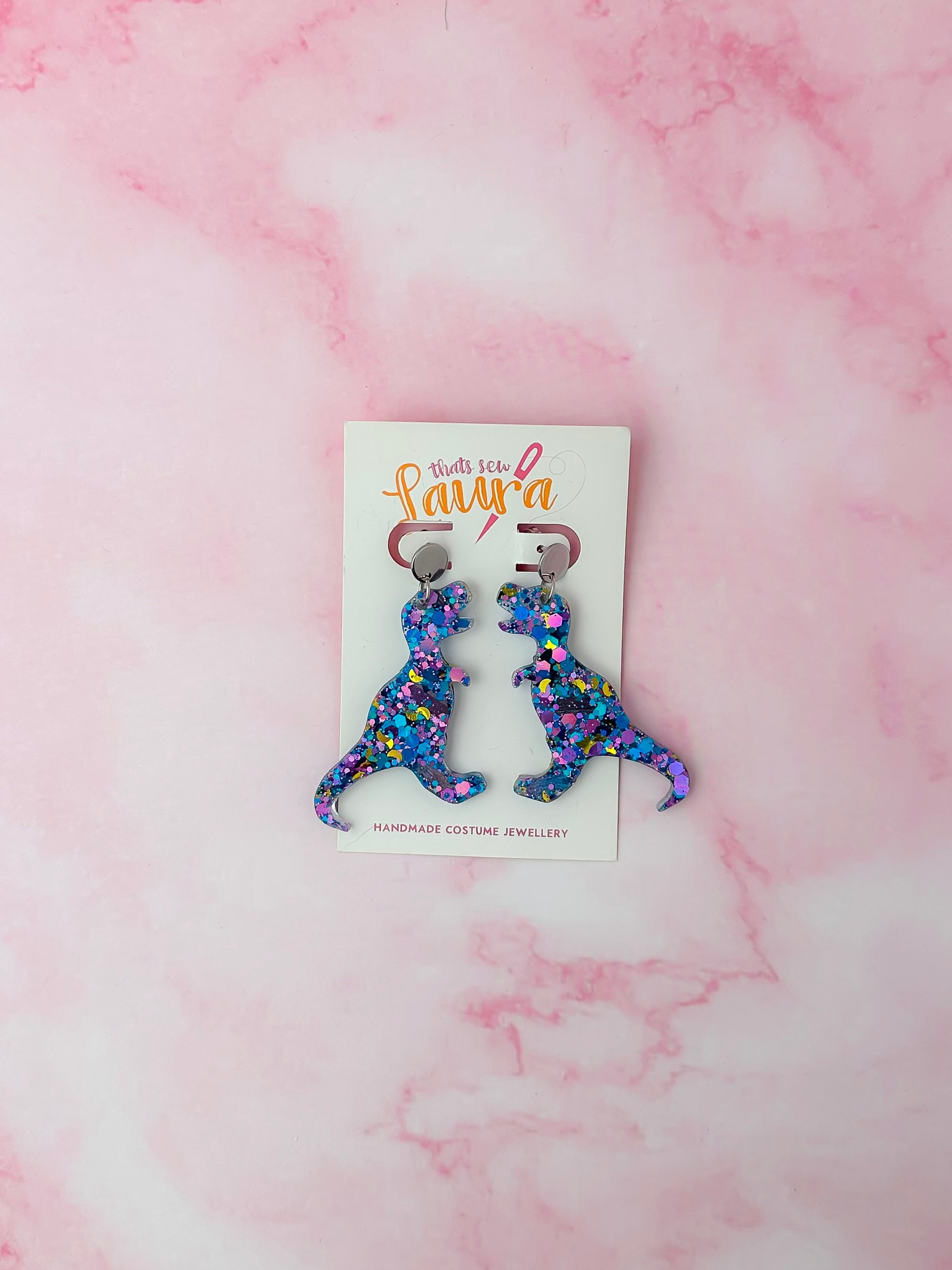 Mystical moon Dinosaurs - purple, blue & gold Resin Earrings